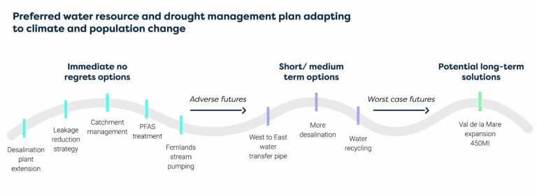 These steps will help us stay resilient in most future scenarios. If conditions become more extreme, we may need additional solutions like a second desalination plant or water reuse schemes.