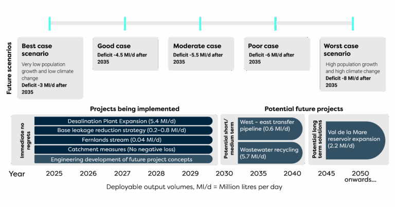 Our forecasts show that the Island could face a water deficit of as much as 8.6 million litres per day by 2035 in a worst-case drought scenario, unless we take action now.